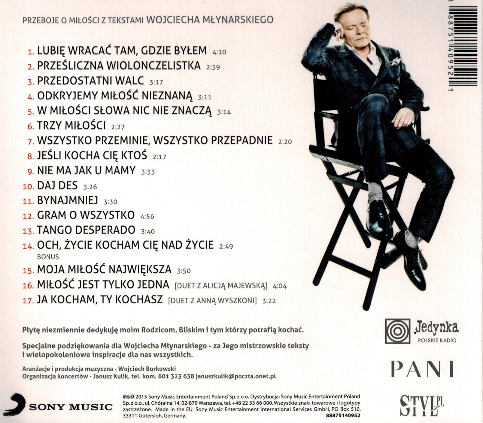 Słowa Wojciech Młynarski; aranżacje i produkcja muzyczna Wojciech Borkowski.