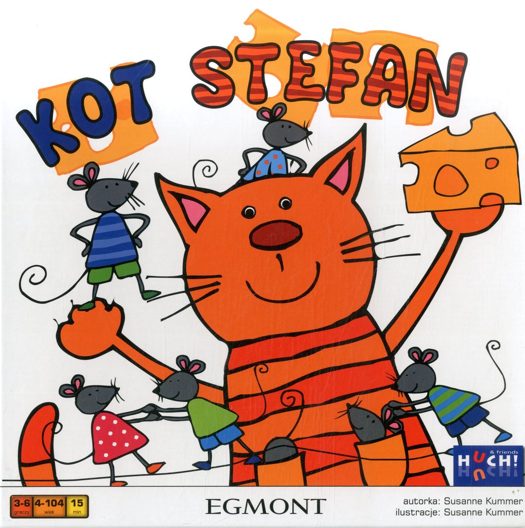 Kot Stefan [Gra] / Susanne Kummer. - Warszawa : Egmont Polska, 2021. - 1 gra (6 myszy, 1 kubek, 1 ser, 1 kostka, 24 karty) : karton, tektura, drewno, filc, kolor ; w pudełku 25x25x9 cm + instrukcja.