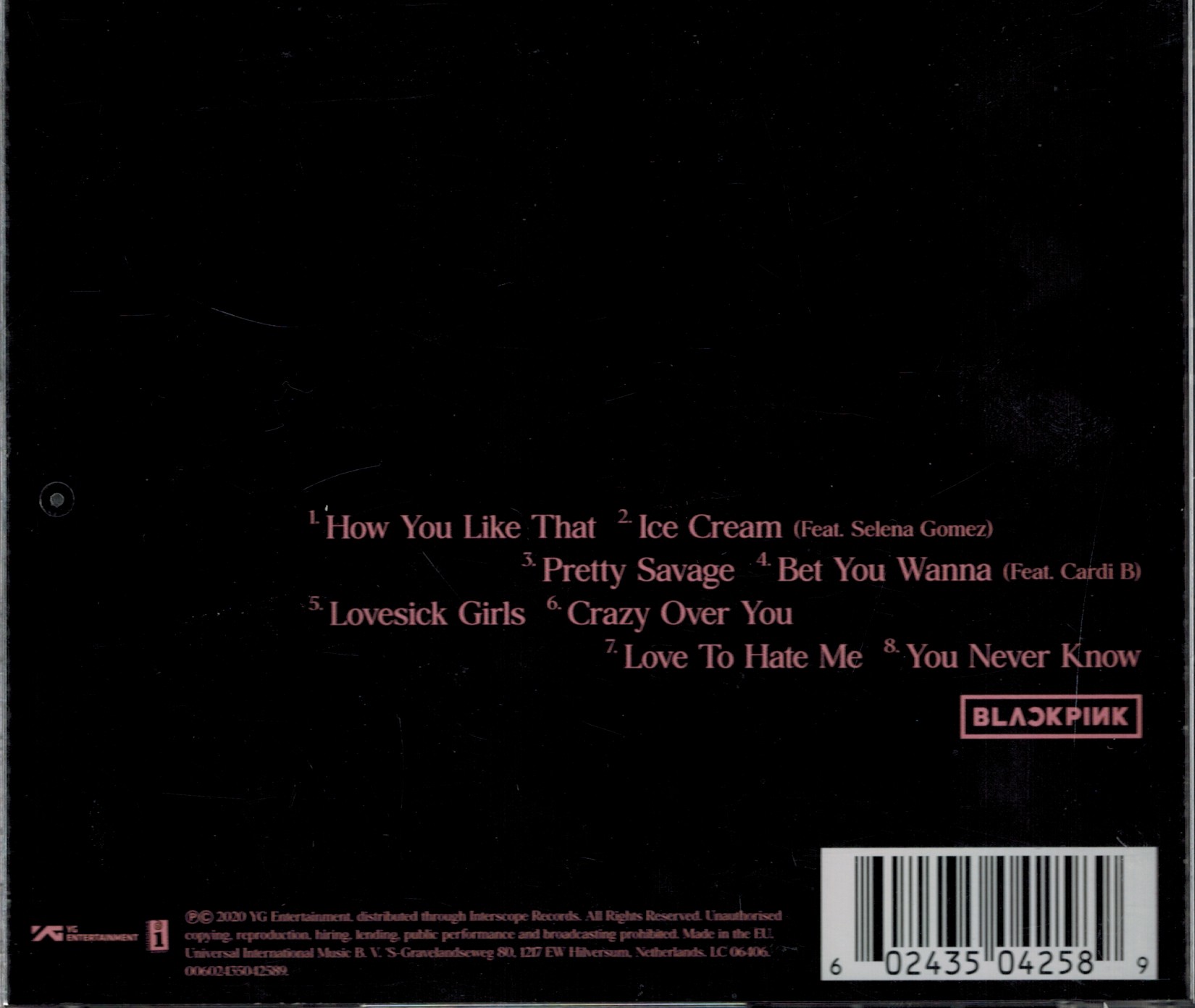 Zawiera: CD zawiera: How You Like That ; Ice Cream (With Selena Gomez) ; Pretty Savage ; Bet You Wanna (Featuring Cardi B) ; Lovesick Girls ; Crazy Over You ; Love To Hate Me ; You Never Know