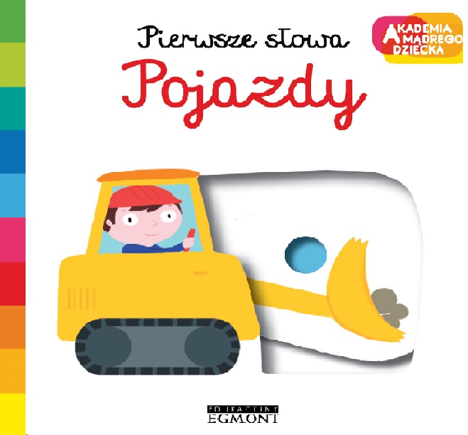 Pierwsze słowa : pojazdy / [ilustracje Nathalie Choux]. - Warszawa : Wydawnictwo Egmont Polska, copyright 2018. - [12] stron : ilustracje ; 17x17 cm.