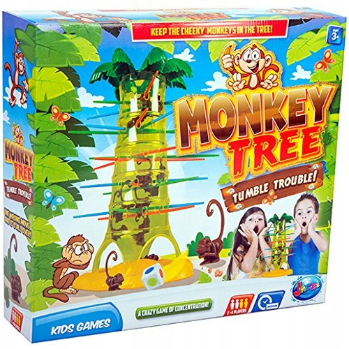 SPADAJĄCE MAŁPKI to wciągająca gra zręcznościowa. W zestawie znajdują się patyczki oraz "czepiające się" małpki. Grę rozpoczynamy wkładając patyczki w otwory drzewka losowo i wsypaniu wszystkich małpek w otwór u góry. Po ustaleniu kolejności gracze rzucają kolorową kostką, która informuje jakiego koloru patyczek gracz musi wyciągnąć z drzewka. Zadaniem gracza jest takie operowanie, aby po jego ruchu spadło jak najmniej małpek. Wygrywa ten gracz, który zrzucił najmniej małpek. Gra jest znana na całym świecie pod różnymi nazwami.