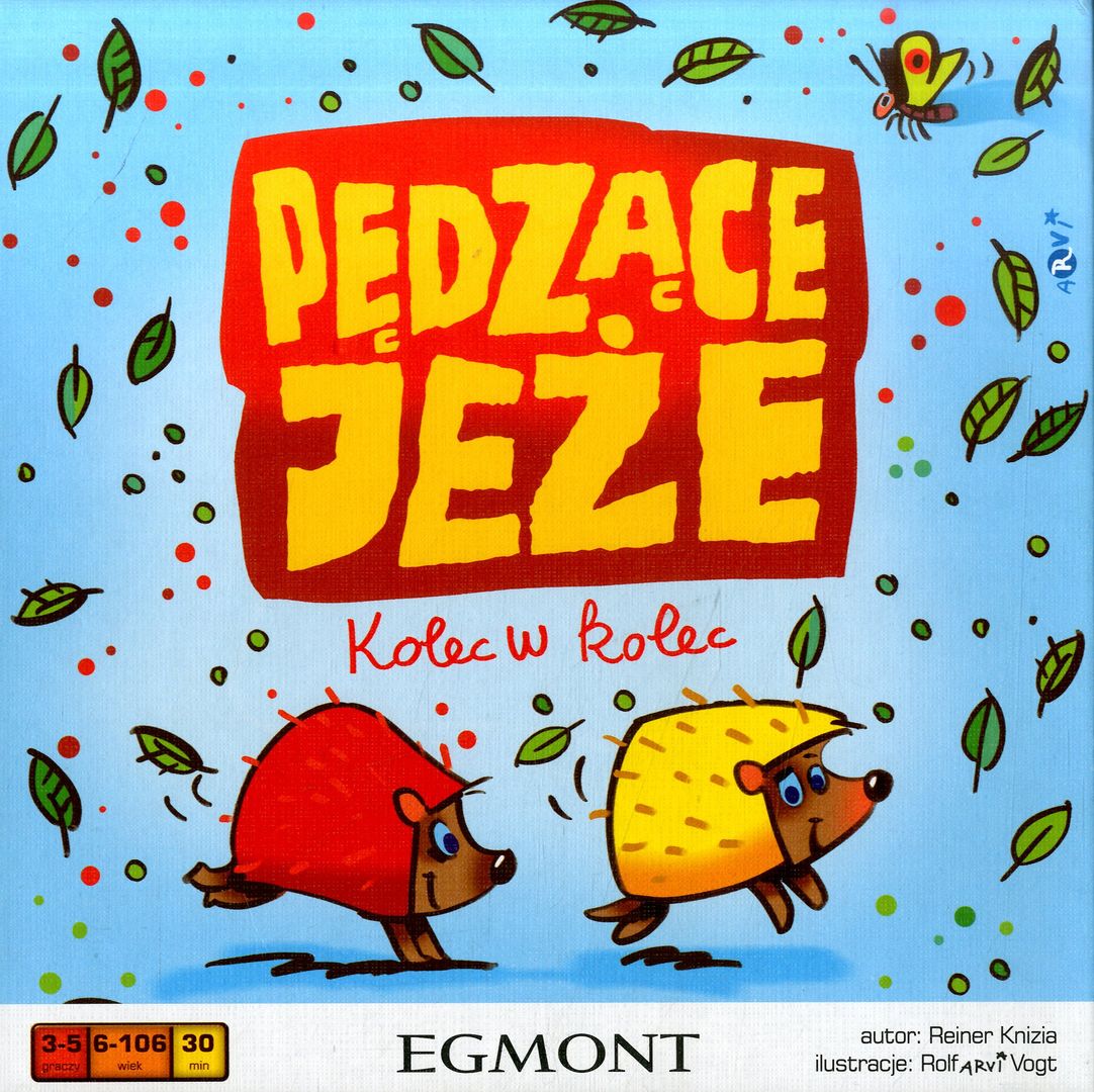 W pudełku : 1 plansza, 4 figurki jeży, 55 kart, 36 żetonów punktów, instrukcja