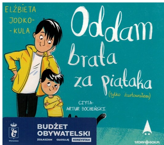 Oddam brata za piątaka (tylko żartowałem) / Elżbieta Jodko-Kula ; czyta Artur Bocheński. - [Piaseczno] : Storybox.pl ; [Kraków] : Wydawnictwo Skrzat, 2021. - 1 płyta audio (CD) (2 godz. 4 min) : zapis cyfrowy, stereo ; 12 cm.