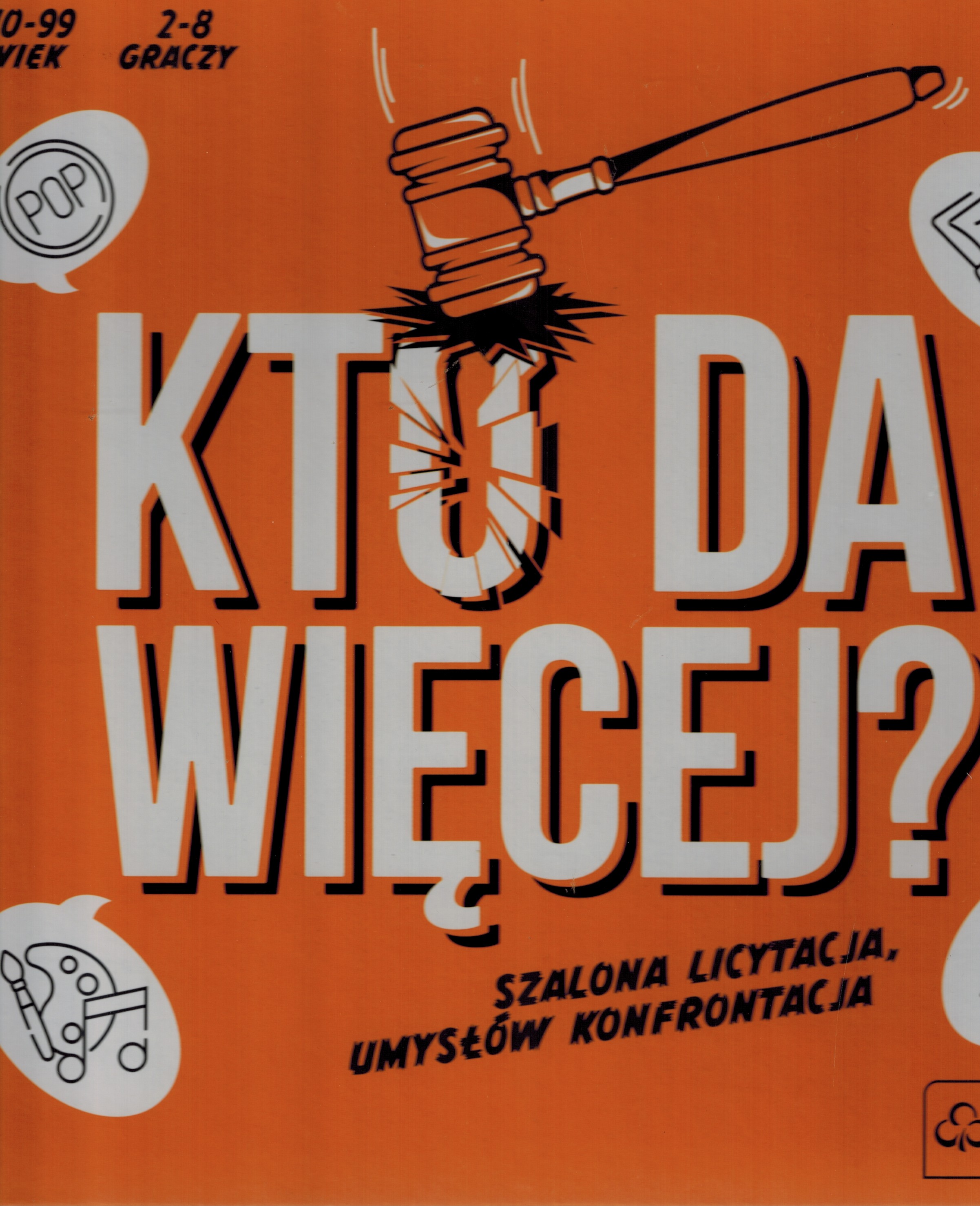 Kto Da Więcej to gra strategiczna, quiz i licytacja w jednym pudełku! Znać odpowiedzi na pytania to za mało. Wyzwaniem jest udzielić ich więcej niż pozostali! Kto da więcej, ten odpowiada! Nie zawsze istnieje tylko jedna dobra odpowiedź, czasem jest ich wiele! Wygrywa ten, kto udzieli ich najwięcej! Na uczestników czeka ponad 800 pytań z 5 kategorii: Wiedza o świecie, Popkultura, Słowa i literatura, Sztuka i Muzyka oraz Rozmaitości. Postaw wszystko na jedną kartę i licytuj swoją wiedzę! Ale uważaj, by nie przeholować i nie odpaść z gry. Inni gracze na pewno zweryfikują poprawność Twoich odpowiedzi. Zaryzykujesz czy zagrasz bezpieczne, licząc na pomyłki przeciwników? Tu ważna jest strategia! Kto Da Więcej to prawdziwy test inteligencji i odwagi.
