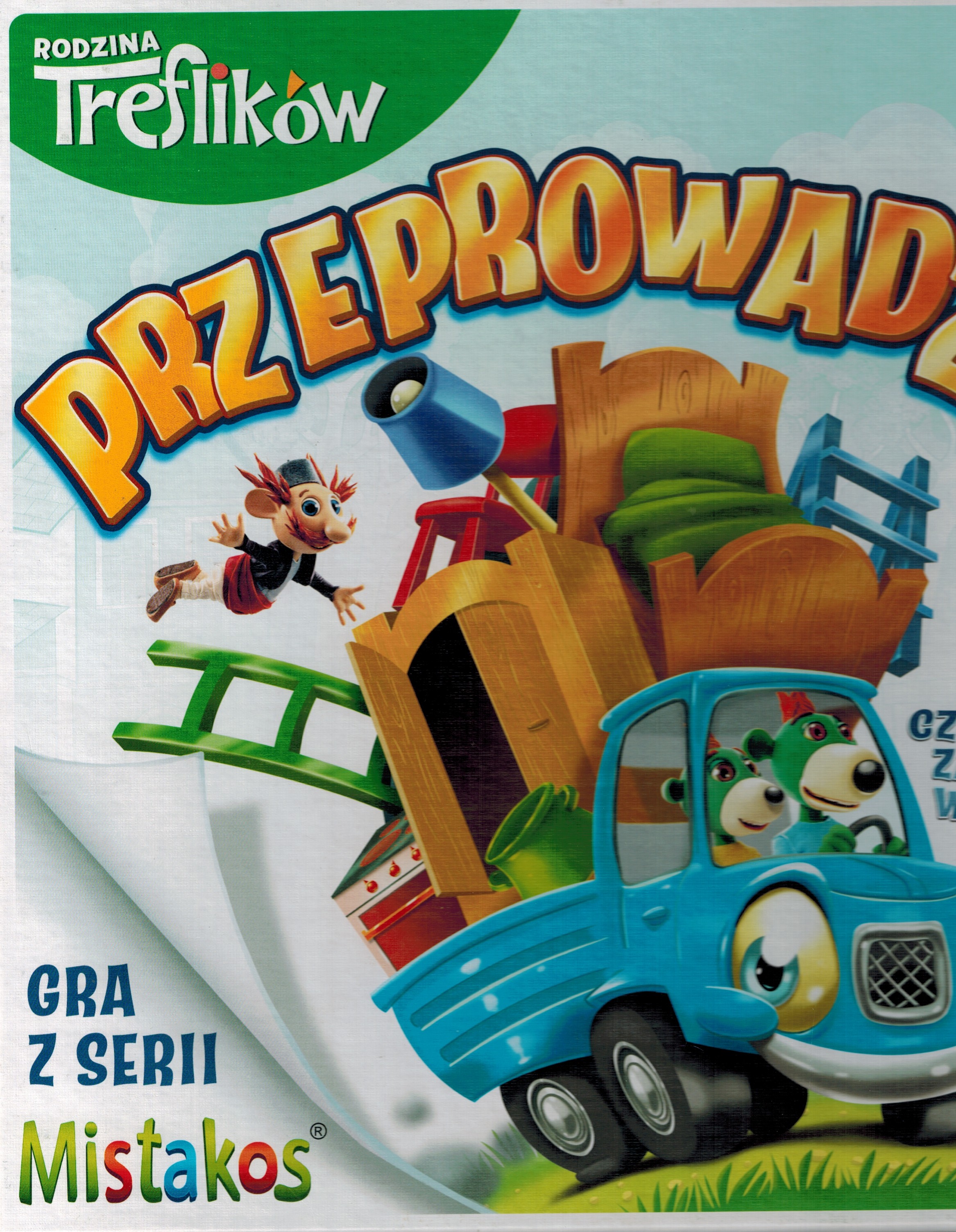 Przeprowadzka / autor gry Michał Szewczyk. - Gdynia : Trefl, [2021]. - 1 gra (samochód, szafa, łóżko, piekarnik, lampa, 4 krzesłą, 4 drabiny, 4 garnuszki, 6 kołysek, figurka Małego Wujcia, 3 żetony, kostka) : plastik, tektura, kolor ; w pudełku 8x26x26 cm + instrukcja ([2] strony ; 25 cm).